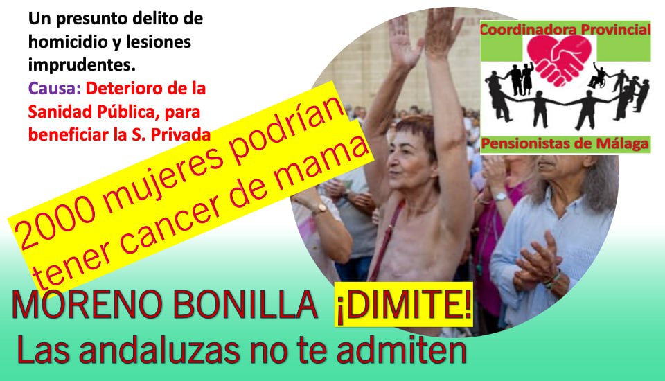 Lo que ha hecho Moreno Bonilla no tiene perdón y tiene que tener consecuencias. Andalucía admite que 2000 personas han sufrido los retrasos en el diagnóstico de cáncer de mama. El cáncer no espera y algunas mujeres ya no están… , estas son las consecuencias de destrozar la SANIDAD PÚBLICA y de colapsarla en beneficio de la PRIVADA.