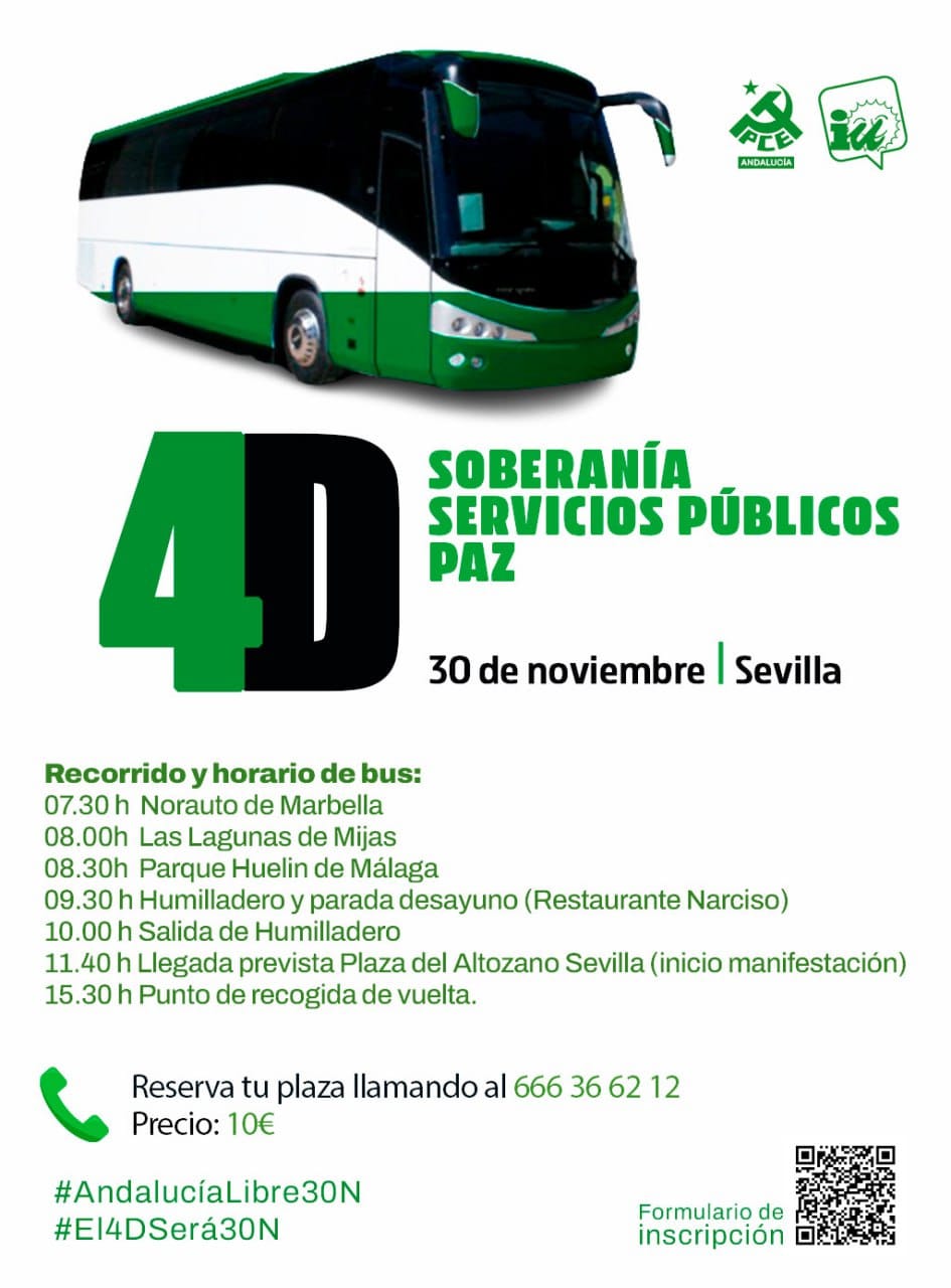 El 30 de Noviembre seguimos participando en la Manifestación con carácter andaluz, que saldrá el Plaza Altozano a las 12.00h y concluirá en San Telmo.
